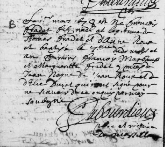 Naissance de Pierre Fradet, frère de Thomas Fradet