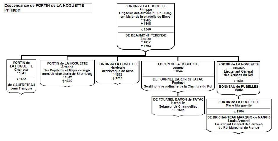 Suite à de longs procès entre les descendants, la Seigneurie de Chamouillac fut finalement adjugée en 1637 à Philippe Fortin, Seigneur de La Hoguette en Normandie, et à son épouse Louise de Beaumont-Péréfixe, sœur de l’Archevêque de Paris.