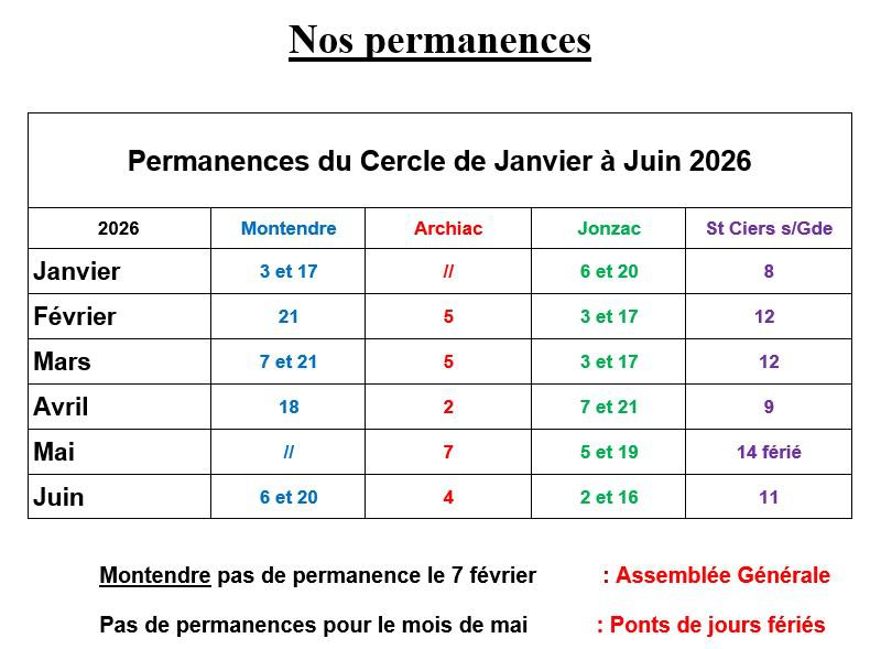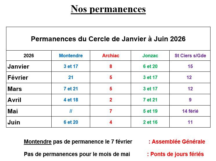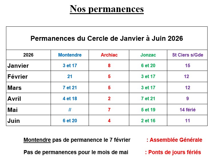 Les permanences sont accessibles pour tous les généalogistes, débutants ou confirmés. Nous vous donnerons volontiers un renseignement concernant vos recherches. Pour continuer à bénéficier de notre base de données consultable sur le logiciel Nimègue installé sur nos ordinateurs nous vous demanderons bien sûr d’adhérer à notre cercle. Ce sont les cotisations qui nous permettent de maintenir et développer notre base de données.