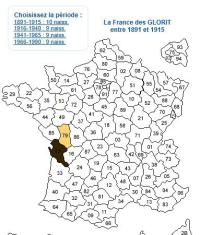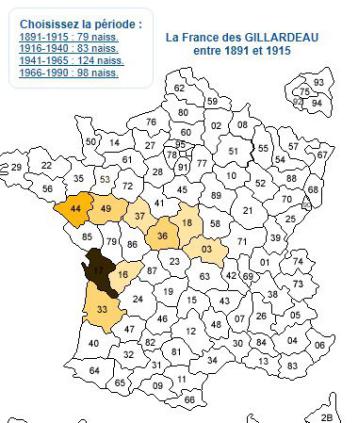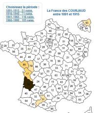 Vous trouverez ici des patronymes "typiques", qui se trouvent dans la haute Gironde ou la haute Saintonge (régions où la même langue est parlée), et très peu, sinon pas du tout, dans les autres régions, que ces patronymes soient rares ou communs. L'origine du patronyme est indiquée avec l'explication qui est la plus "régionale". Une carte montre la réparttion du patronyme entre 1891 et 1915 période la plus ancienne connue.Les cartes sont établies avec Géopatronymes.com