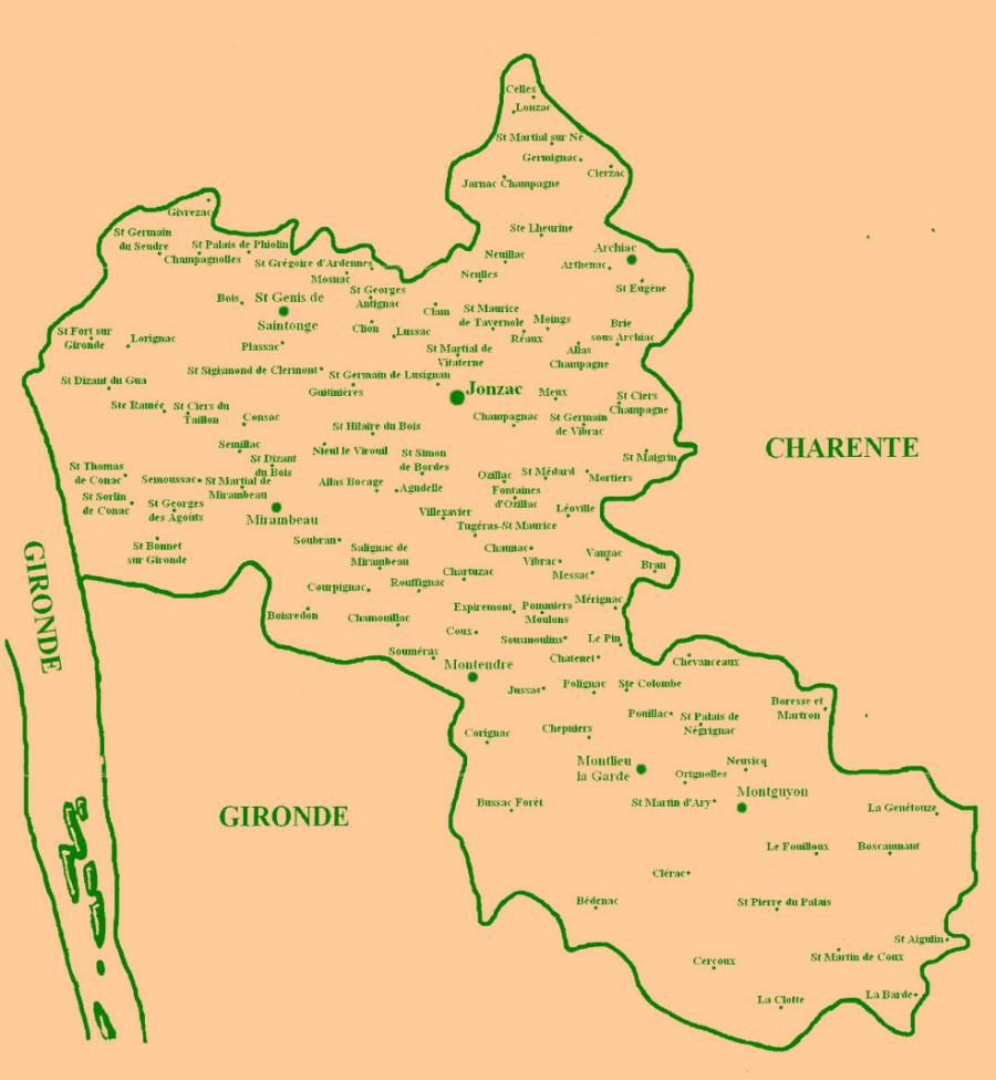 Carte des Communes du secteur couvert par le Cercle Généalogique du Sud Saintonge