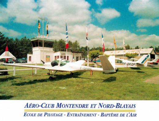 L’Aéroclub de “Montendre et Nord Blayais” (association loi 1901 à but non lucratif) fut alors fondé le premier septembre 1956 avec la construction d’un hangar en bois pour tout abri. Dans les années 60, le local d’accueil est construit en dur, deux hangars sont montés et dans les années 70, la tour de contrôle.