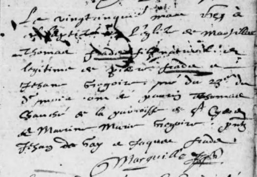 (Ce sont les plus anciennes traces de la famille de Jean Fradet à Marcillac. Les plus anciens documents sont de 1628).