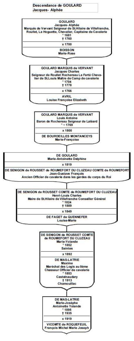 En 1738 il en fit don à son fils cadet, Antoine de Goulard de Villefranche qui mourut en 1784, laissant un fils qui décéda sans postérité l’année suivante.