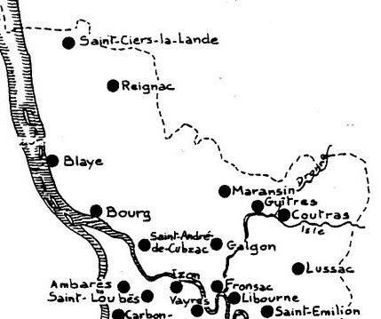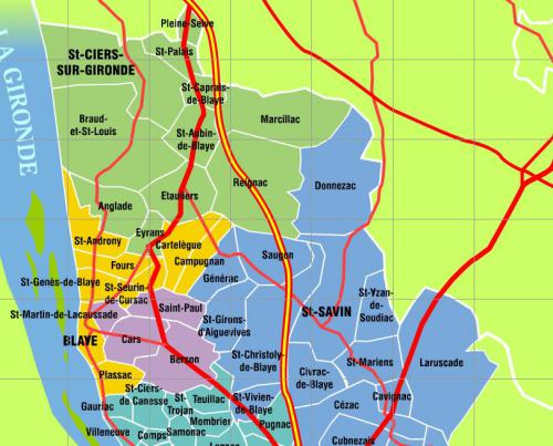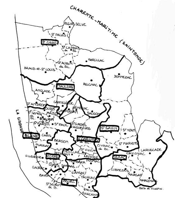 Si vous recherchez des mariages de l'an VII, ils ont été célébrés au chef lieu des cantons créés en 1791 dans le département du Bec d'Ambès. Les limites des cantons sont indiquées sur la carte ci-dessous