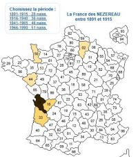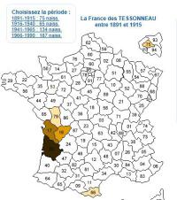 Vous trouverez ici des patronymes "typiques", qui se trouvent dans la haute Gironde ou la haute Saintonge (régions où la même langue est parlée), et très peu, sinon pas du tout, dans les autres régions, que ces patronymes soient rares ou communs. L'origine du patronyme est indiquée avec l'explication qui est la plus "régionale". Une carte montre la réparttion du patronyme entre 1891 et 1915 période la plus ancienne connue.Les cartes sont établies avec Géopatronymes.com